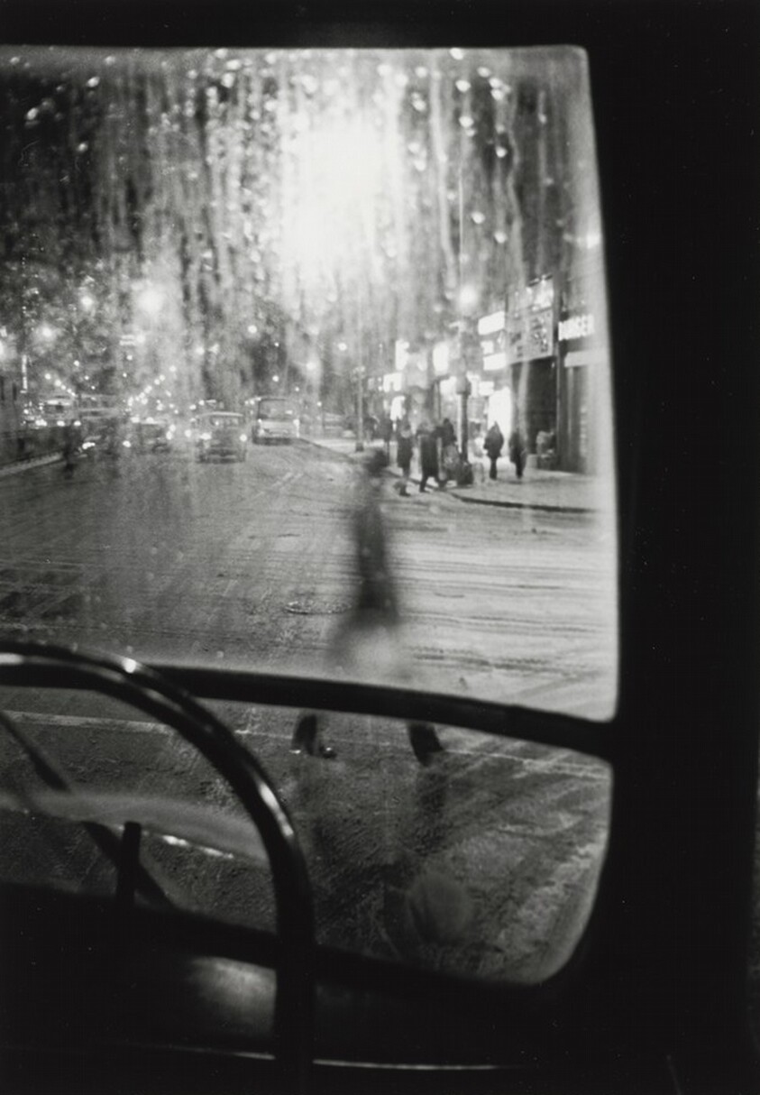 #104 Bus going down Broadway near 72nd Street during a sudden snowstorm, New York City