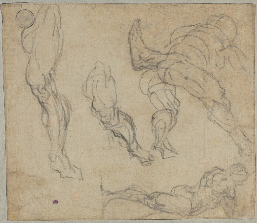 Head in Three-Quarter Profile (recto); Standing Young Man Pointing Left and Sketches of Feet, Arm (verso)