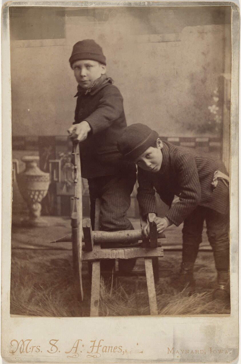 Portrait of Children Sawing Wood