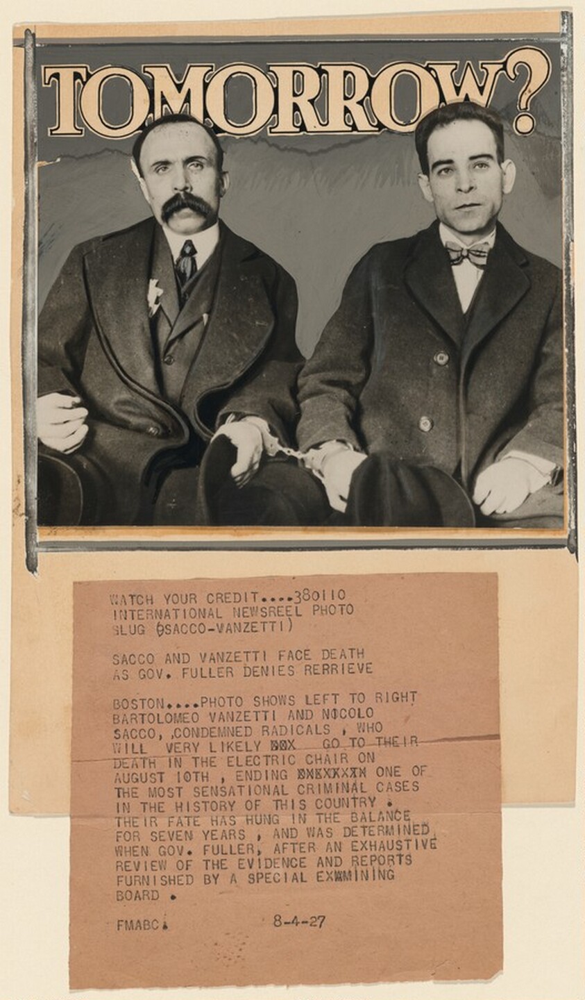 Title from caption on object: “Sacco and Vanzetti Face Death as Governor Fuller Denies Reprieve"