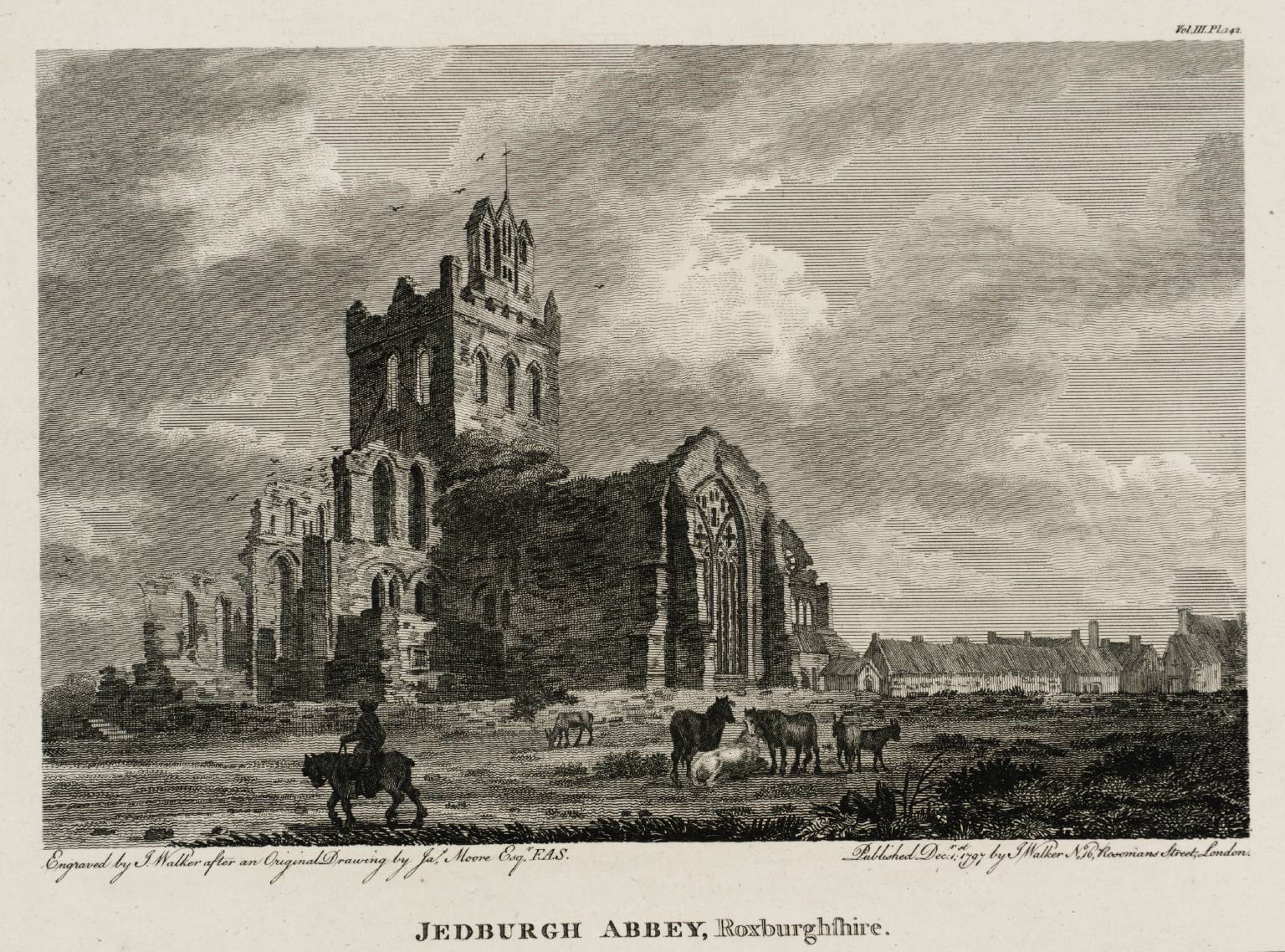 Jedburgh Abbey, Roxburghshire, engraved by J. Walker
