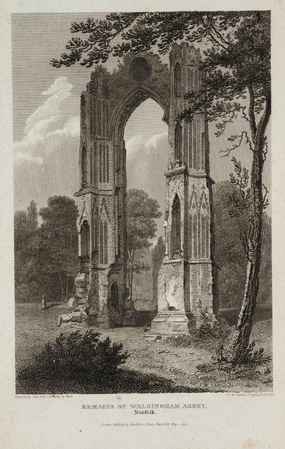 Remains of Walsingham Abbey, Norfolk, engraved by Scott