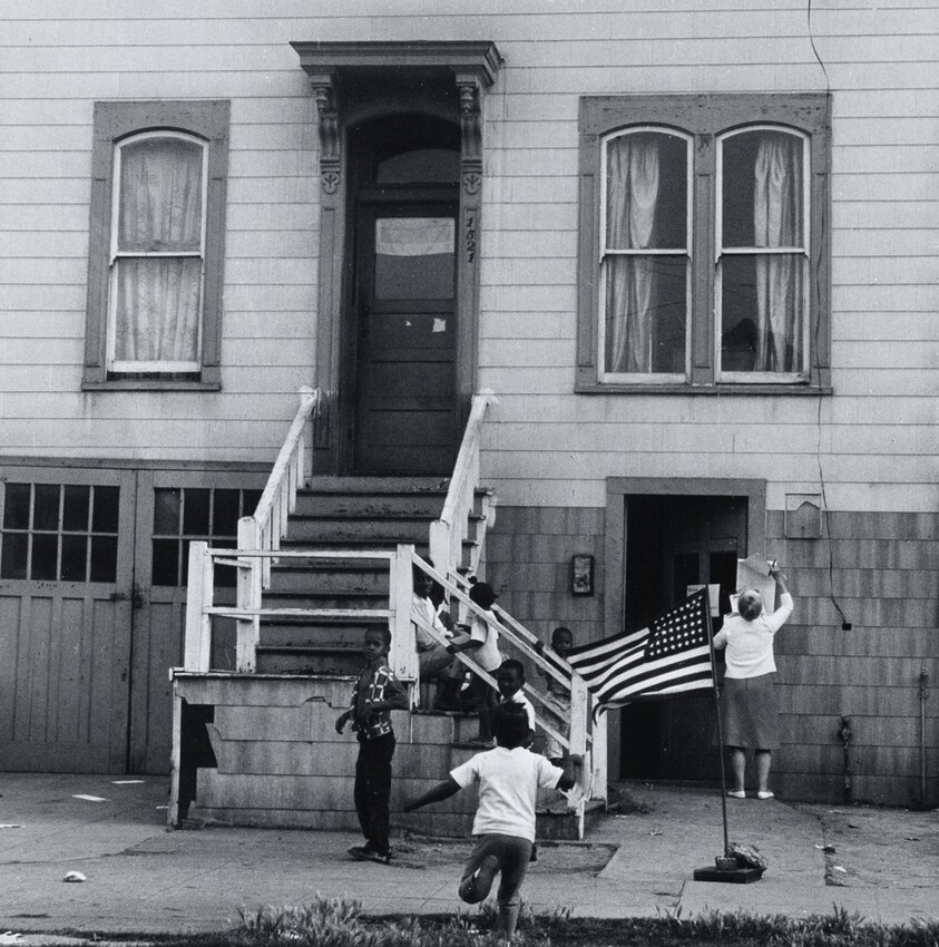 Mr. Piper and Flag, Lewis Street, West Oakland, California