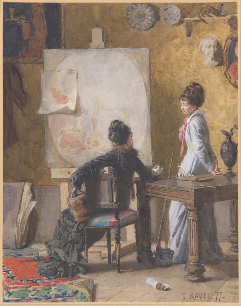 Adéle de Saussure and Marie-Louise Ravel, the Artist's Wife, in His Studio