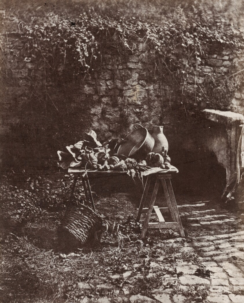 Nature Morte: chaudron, cruche et legumes, sur une table a tretaux (Still Life: Pot, Pitcher and Vegetables on a Sawhorse Table)