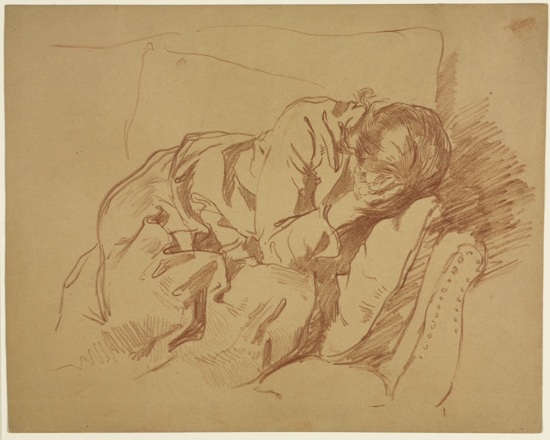 Samuel Crone was virtually unknown until a 1997 exhibition of his work was held in Memphis, Tennessee, his childhood home. We know almost nothing about his early life and training except that he worked in a Memphis photographic studio. In 1877, while still a teenager, he was listed as an "artist" in the city registry. By the end of that same year he had enrolled at the Bavarian Royal Academy of Art in Munich, Germany. Crone spent most of his life in Europe and supported himself and his wife, Sarah (known as Sadie), through the sale of his oil paintings. He showed paintings at major exhibitions in Munich, Paris, and Philadelphia. His major contribution to 19th-century American art, however, lies with his drawings more than his paintings. They show an admirable directness of observation and a technical facility that deserves comparison with the major American artists working at the end of the 19th century. American Artists and the Munich School In the 1860s, 1870s, and 1880s, the Bavarian Royal Academy of Art in Munich developed into an important teaching center and was a magnet for American artists studying abroad. Given that his parents were German, Crone's choice of the school for his artistic training was a natural one. At the time, about 10 percent of the students there were American, and such important painters as William Merrit Chase and Frank Duveneck had been at the Academy just a few years before Crone began his studies. The style of painting that became known as the "Munich School" was strongly influenced by the French Barbizon painters, realists like Gustave Courbet, and 17th-century Dutch masters, whose works were on view in the city's important picture gallery. The Munich School style contrasted strongly with the tight, linear academic technique then practiced in Paris. Scenes of everyday life were favorite subjects and the Munich School painters favored loose, expressive brushstrokes and dark, brownish tonalities.