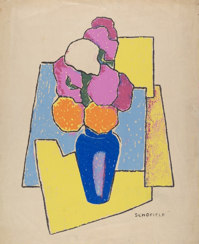 Untitled (Zinnias in a Blue Vase)