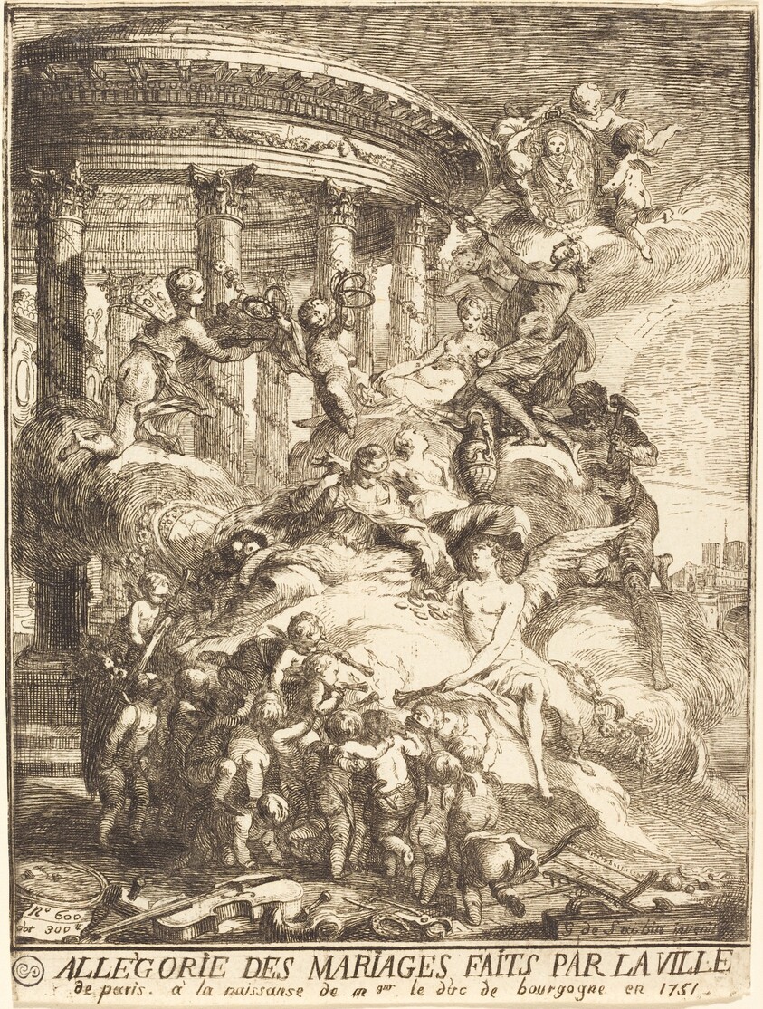 Allégorie des mariages faits par la ville de Paris à la naissance du duc de Bourgogne (Allegory of the Marriages Performed by the City of Paris in Honor of the Birth of the Duc de Bourgogne in 1751)