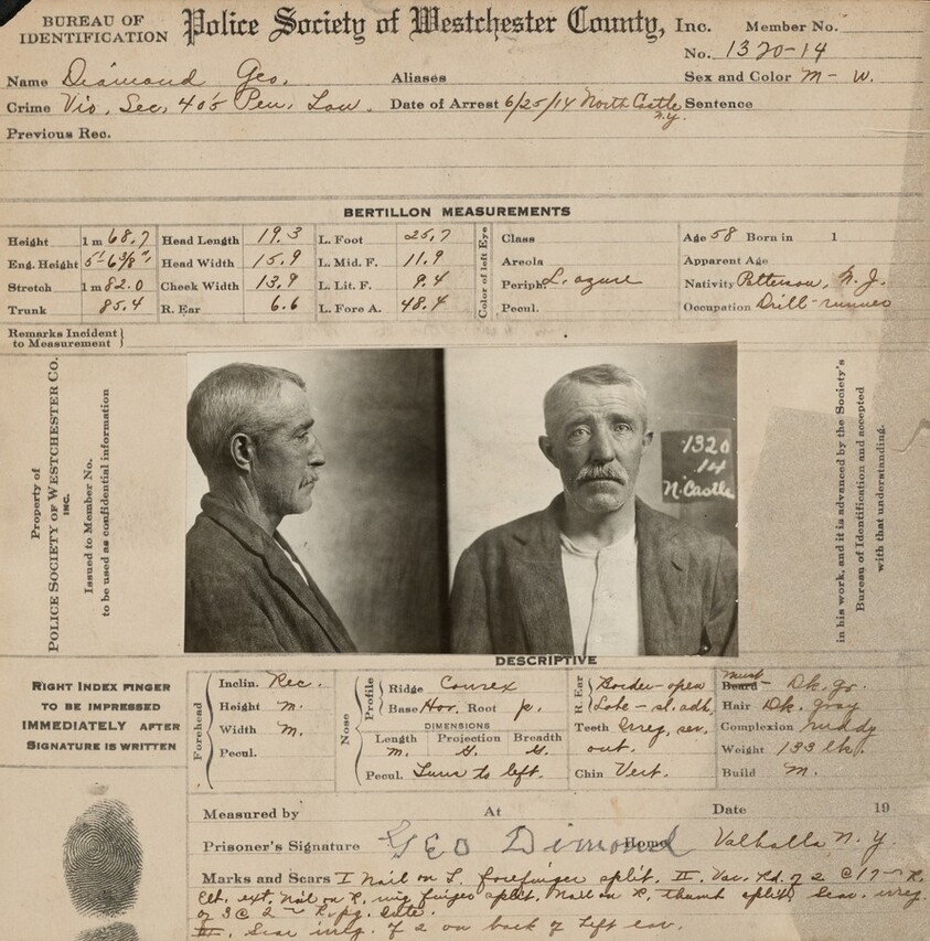 George Diamond's arrest card for violence
