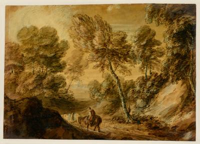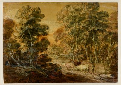 Wooded Landscape with Cows at a Watering Place, Figures and Cottage