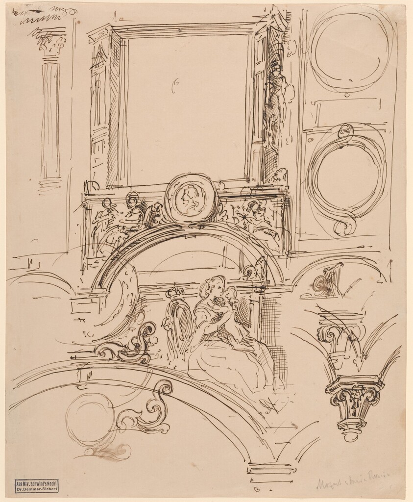 Architectural Details for a Wall Decoration with Empress Maria Theresia Embracing the Young Wolfgang Amadeus Mozart