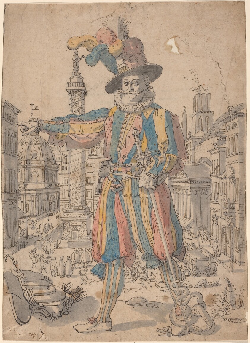 Giovanni Grosso of the Swiss Guards Standing before a View of Rome
