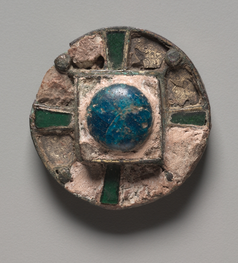 bronze, gold foil, traces of gilding and glass