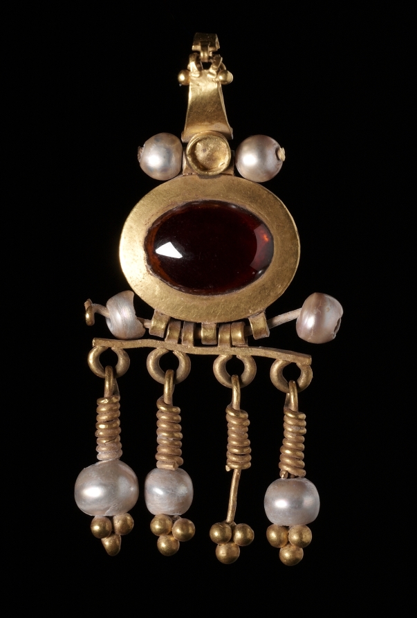 gold with garnet and pearls