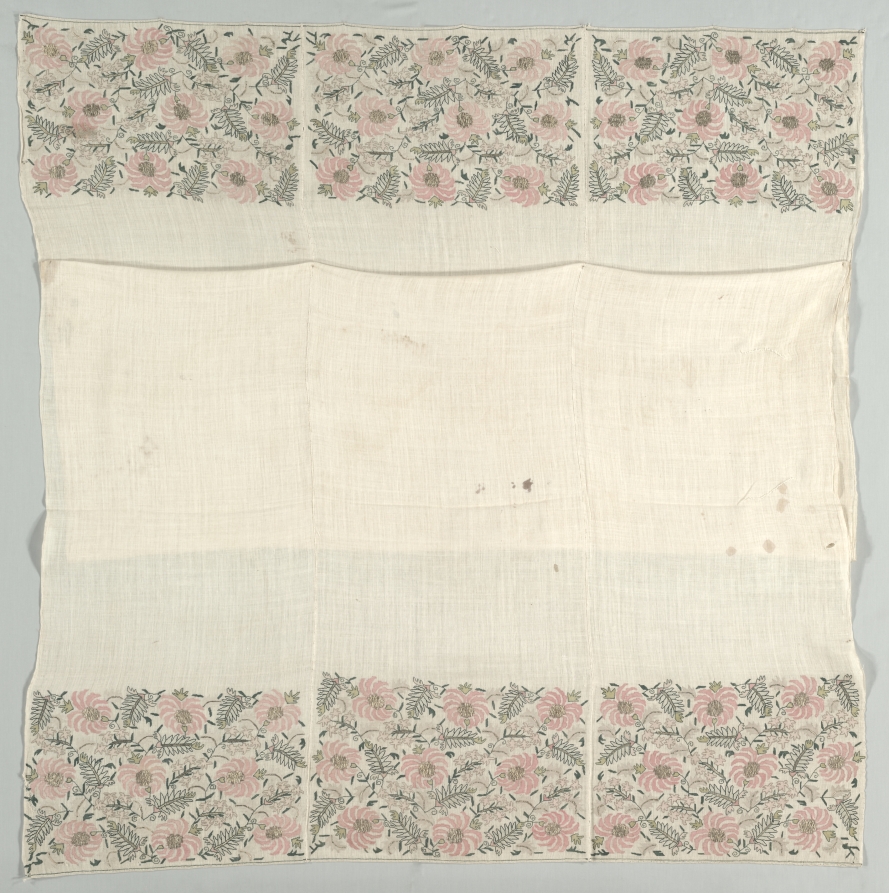embroidery: silk on linen tabby ground