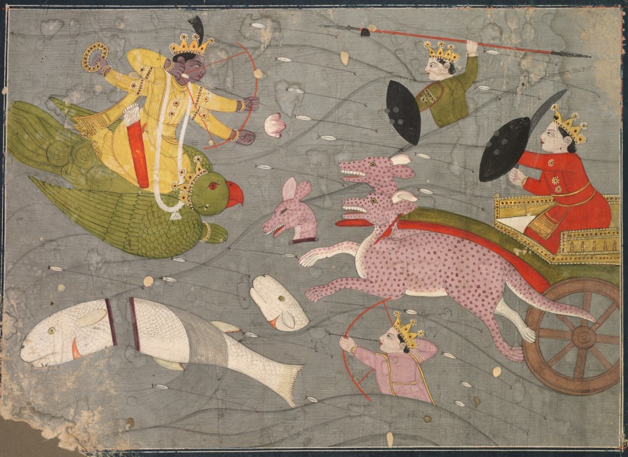 Krishna fighting the sons of King Bana, from an Usha-Aniruddha