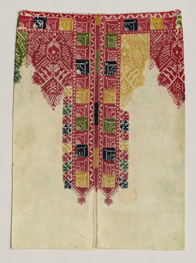 This densely embroidered textile from Meknès, Morocco was possibly used as a pillow cover.
