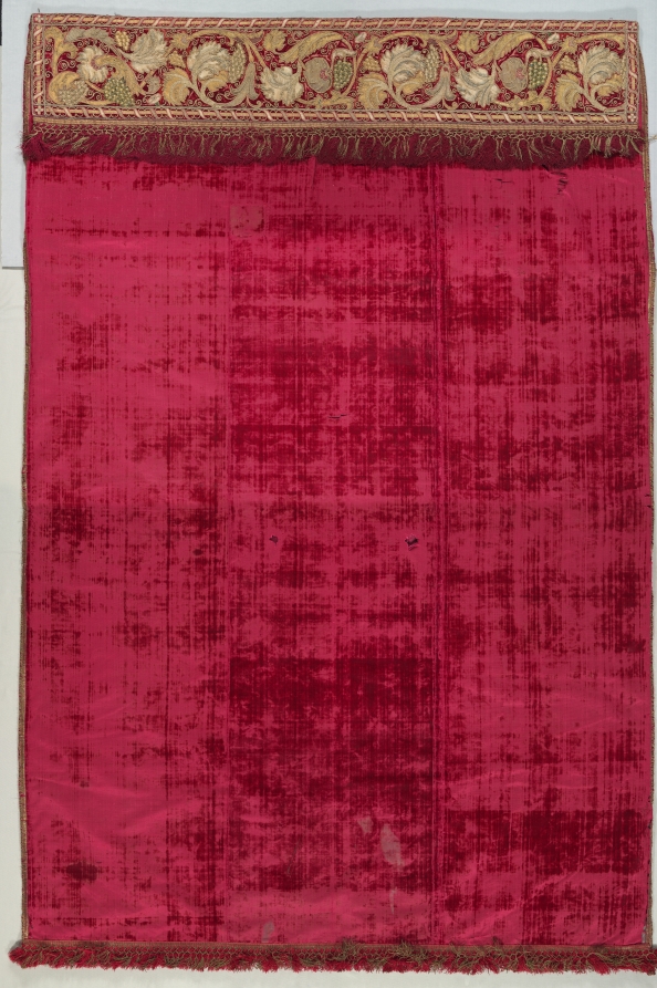 silk velvet with metal thread embroidered valance and passementerie