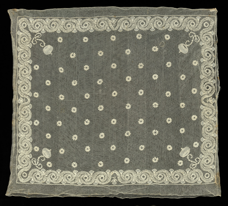 Cotton: machine made lace net; cotton embroidery