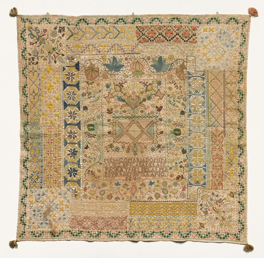embroidery; silk on linen