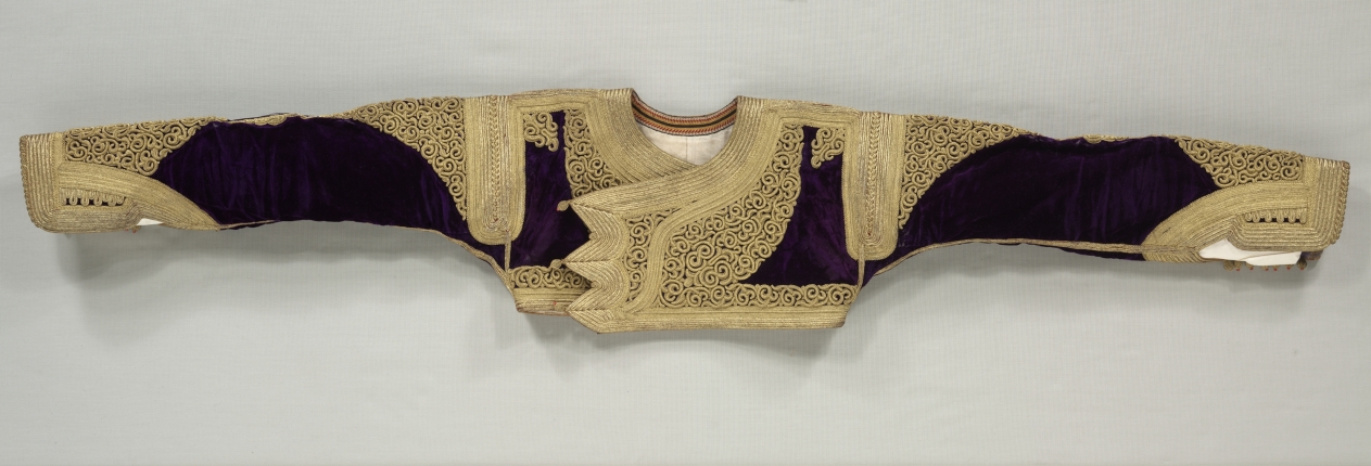 velvet decorated with gold twisted cords; modern cotton lining