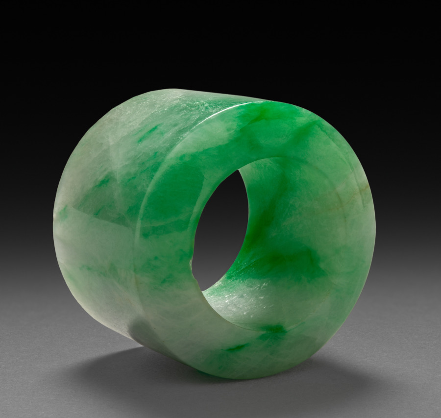 Jade rings were worn by men on the thumb of the right hand to assist with holding and pulling the string of the archer’s bow. However, thumb rings were also fashionable accessories for civil officials in the late Qing dynasty.