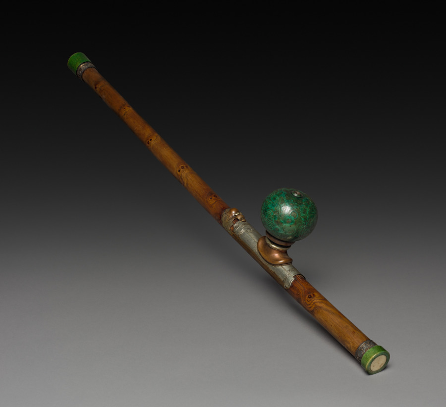 wood stem decorated with bronze and silver