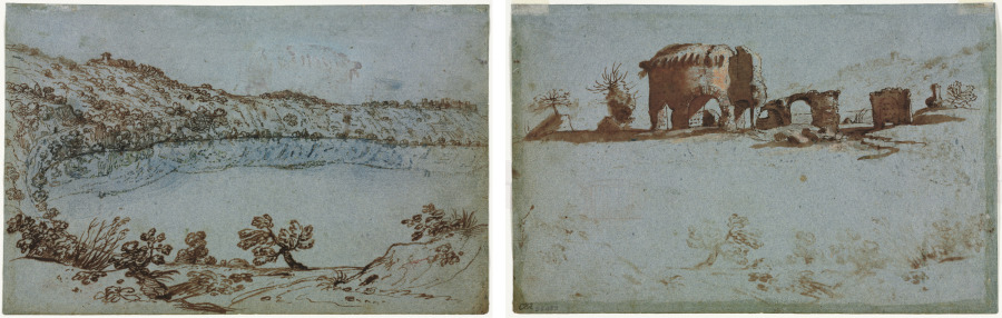 View of Lake Nemi (recto) Small Group of Roman Ruins (verso) by — VisualArtsDB