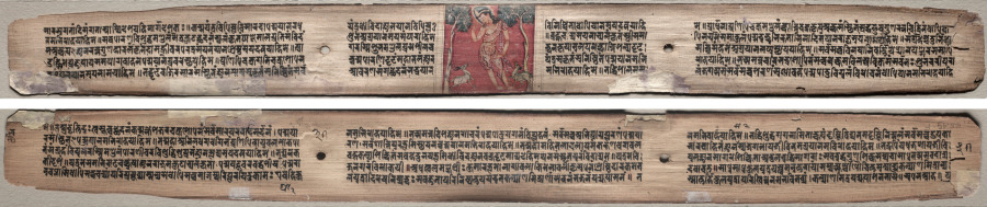 Folio 37 from a Gandavyuha-sutra (Scripture of the Supreme Array): Sudhana and a pair of antelopes (recto); text (verso) by — VisualArtsDB