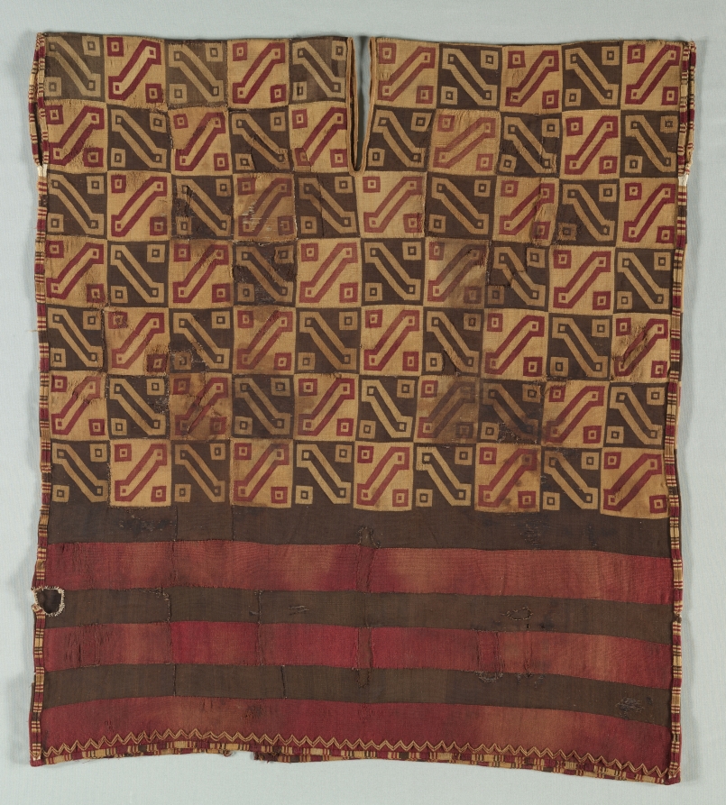 Finely woven interlocked tapestry garments were a privilege of the nobility within the Inca Empire. Such garments were made throughout the vast Inca territory by women of noble families, by professional weavers, and by the Aclla (Chosen Women). These specialists lived in cloistered communities and served the state by brewing beer and weaving fine cloth. The products of their labor were redistributed by the Inca state as prized gifts to loyal vassals and allies. The standardized decorative scheme of this tunic, known as the Inca Key, is one of the most common Inca tunic patterns.