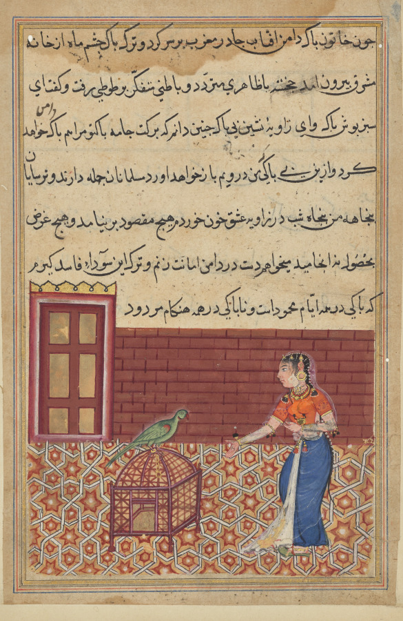 As the sun sets on the fifty-first of fifty-two nights, Khujasta prepares to leave to meet her lover. She is stopped by Tuti, the shrewd, talking parrot, who tells her a story about the cruel King Bahram and the misfortune that befell his vizier’s daughter.