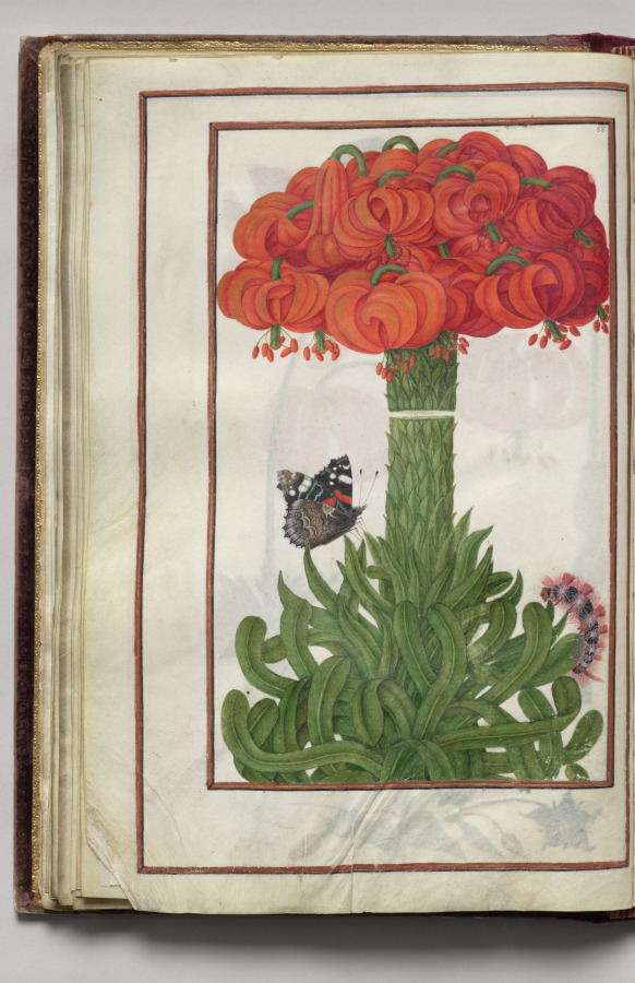 Bouquet of Orange Lilies, Moth, and Caterpillar, folio 19 (verso), from Florilegium (A Book of Flower Studies) by — VisualArtsDB