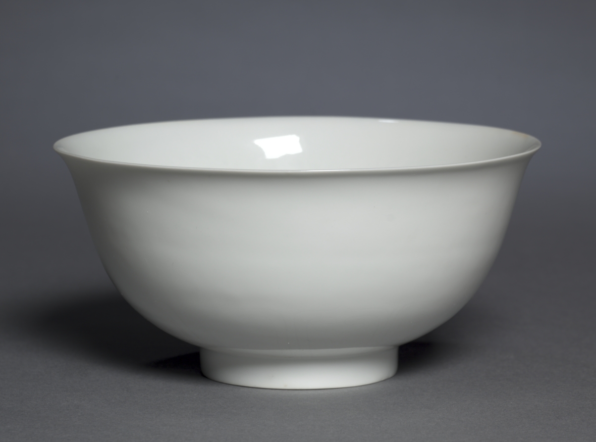 porcelain with molded and incised decoration and white glaze