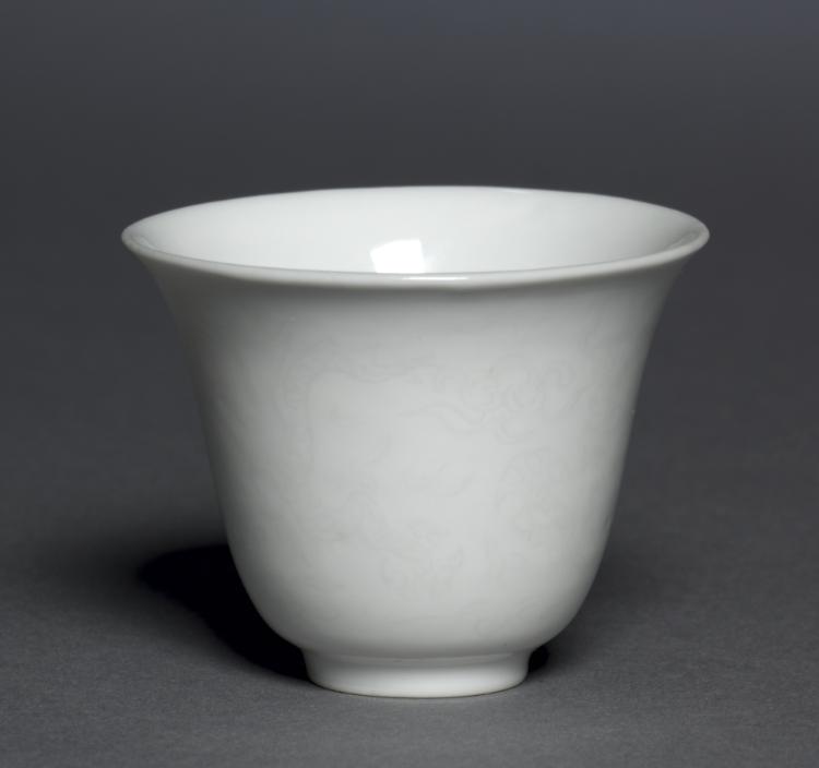In the Ming dynasty (1368–1644), luxury items became more affordable to larger parts of the society, including women, merchants, and literati in non-official positions. Imperial patronage and a growing urban population encouraged consumption of luxury goods and local craftmanship. This small white bell-shaped cup illustrates the advanced porcelain techniques and the creative mind of the talented artisan who sought clients on a competitive market.
