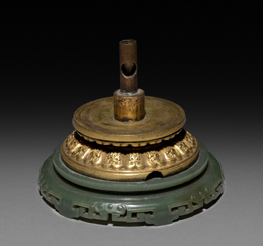 carved jade and gilt bronze