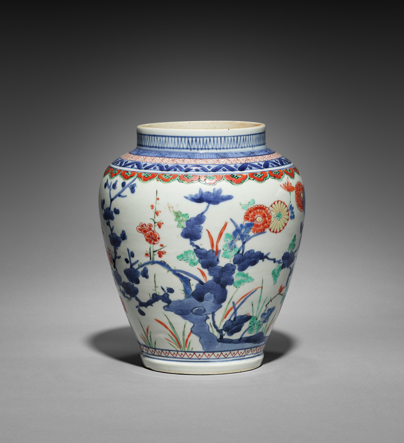 Covered Jar with Chrysanthemums, Peonies, and Plum by — VisualArtsDB