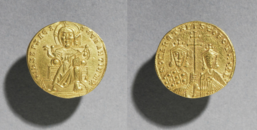 Byzantine Gold Coins The vast number of surviving Byzantine coins attests to the level of trade across the empire. Controlled and supervised by the emperor, the producers of coins took care to represent his authority and reflect his stature. Talented artists were recruited to engrave the dies (molds) used for the striking of coins. Emperors increasingly came to include their heirs and co-emperors on their coinage, as well as other family members or even earlier rulers. Coins were recognized, then as now, as small, portable works of art. With their inscriptions and images, Byzantine coins provide valuable documentation of historical events and a record of the physical appearance of the emperors. The coins shown here include the solidus, the basic gold coin of 24 karats; the tremissis, a gold coin of one-third the weight and value of the solidus; and the nomisma, which in the 10th century replaced the solidus as the standard gold coin.