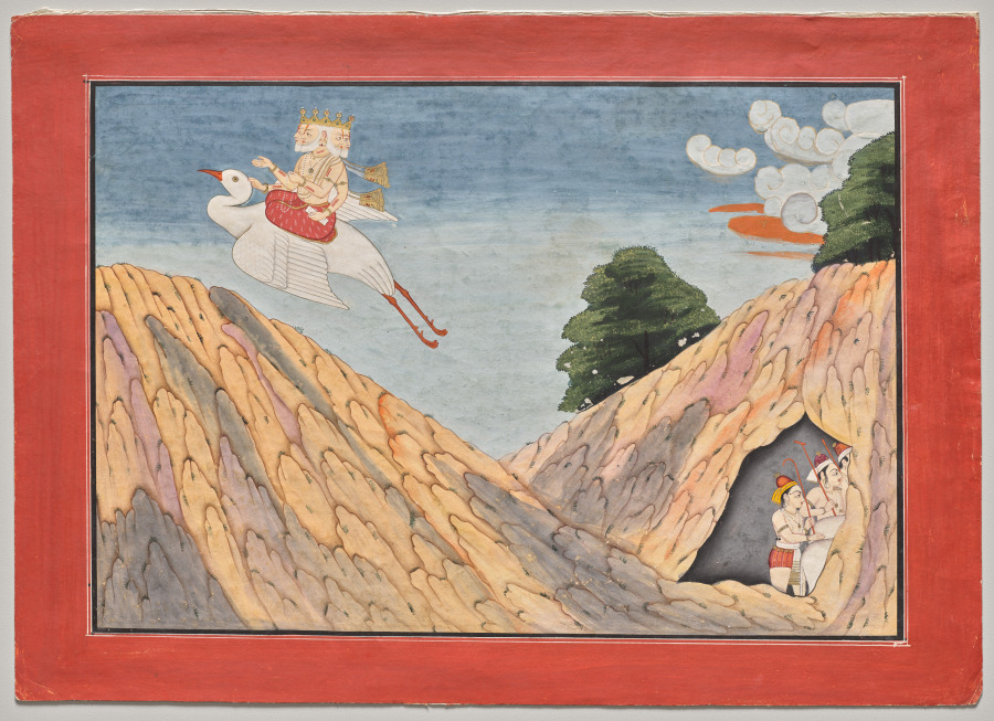 Brahma Hides the Cowherds and the Calves in the Cave, page from a Bhagavata Purana by — VisualArtsDB