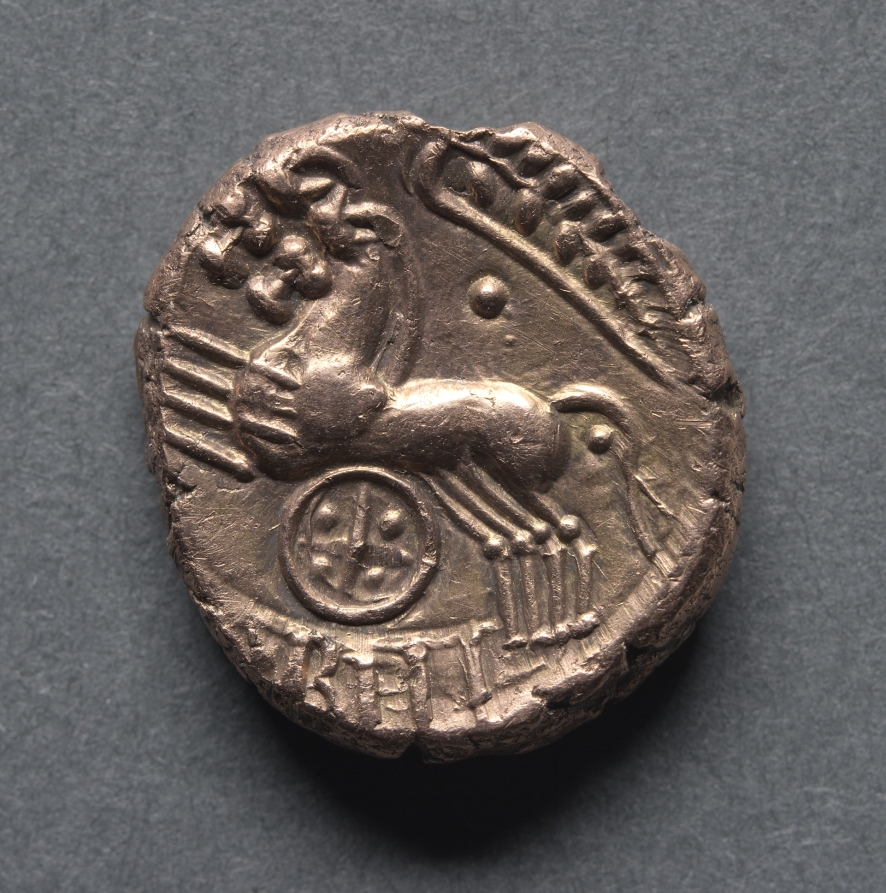 Cunobeline Stater: Two Horses and Wheel (reverse) by — VisualArtsDB