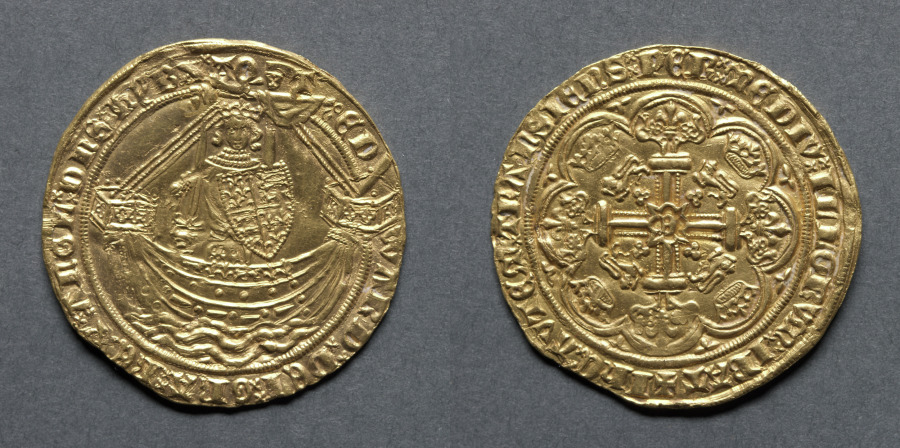 Part of the "Treaty Series" of coins, this is a reference to the Treaty of Bretigni, signed between England and France on May 8, 1360. It was negotiated because of the continued successes of Edward III in his continental wars. Among many other territorial points agreed, the English renounced their pretensions to the crown of France. This affected the king's titles as shown on the coinage. On previous coins the king's titles were "Edward, By the Grace of God of England, France, and Ireland King." Now they read, "Edward, by the Grace of God of England and Ireland, King, Duke of Aquitaine." The treaty was later broken and on the "post-treaty" period nobles the title of King of France was resumed.