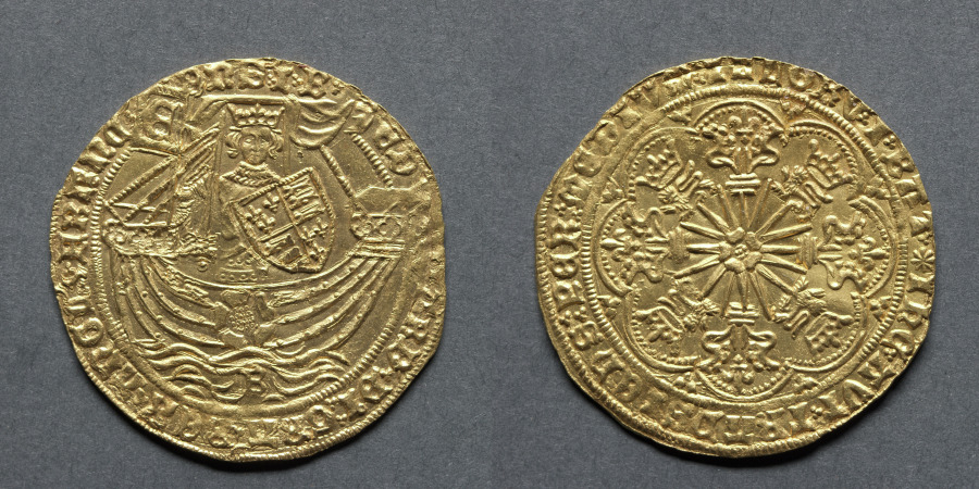 The first and second reigns of Edward IV, who was restored to the throne, were a result of the dynastic civil war between the houses of York and Lancaster, usually known as the Wars of the Roses. The fighting flared up sporadically from 1455 to 1485. With the accession of Edward IV the gold supply was almost nil and after four years the output had been reduced to 300 ibs. Something had to be done without disturbing the country, so a new coin was issued, to be known as the Ryal or Rose Noble. This coin was to have a value of ten shillings. However the gold noble had become the standard professional fee (6s 8d), so a new gold coin known as the angel was issued, with a value of 6 shillings and 8 pence. It became the famous coin that served Tudor and Stuart sovereigns as their presentation piece at the ceremony of touching for the king's evil. The angel pictured St. George slaying the dragon, some say as an allegory of the overthrow of the house of Lancaster by that of York. This is the last of the Noble-type coins. Though the reigns changed over the years, the type of coin varied little in design. During the reign, branch mints were set up in York, Bristol, Coventry, and Norwich.