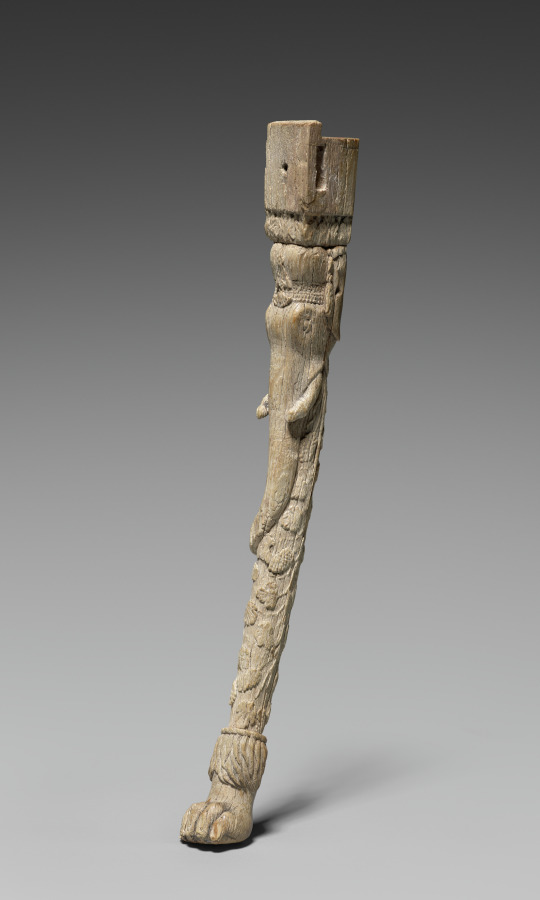 This ivory carving was made to sheath wooden furniture made in India for trade along the Silk Road, which stretched from Rome to China. Indian ivory-faced furnishings--along with lacquer boxes from China and painted glass from Rome--were found in an extraordinary deposit of luxury goods at a site called Begram. The wood on which the ivory and lacquer were affixed has long disintegrated, and only the small pieces remain.