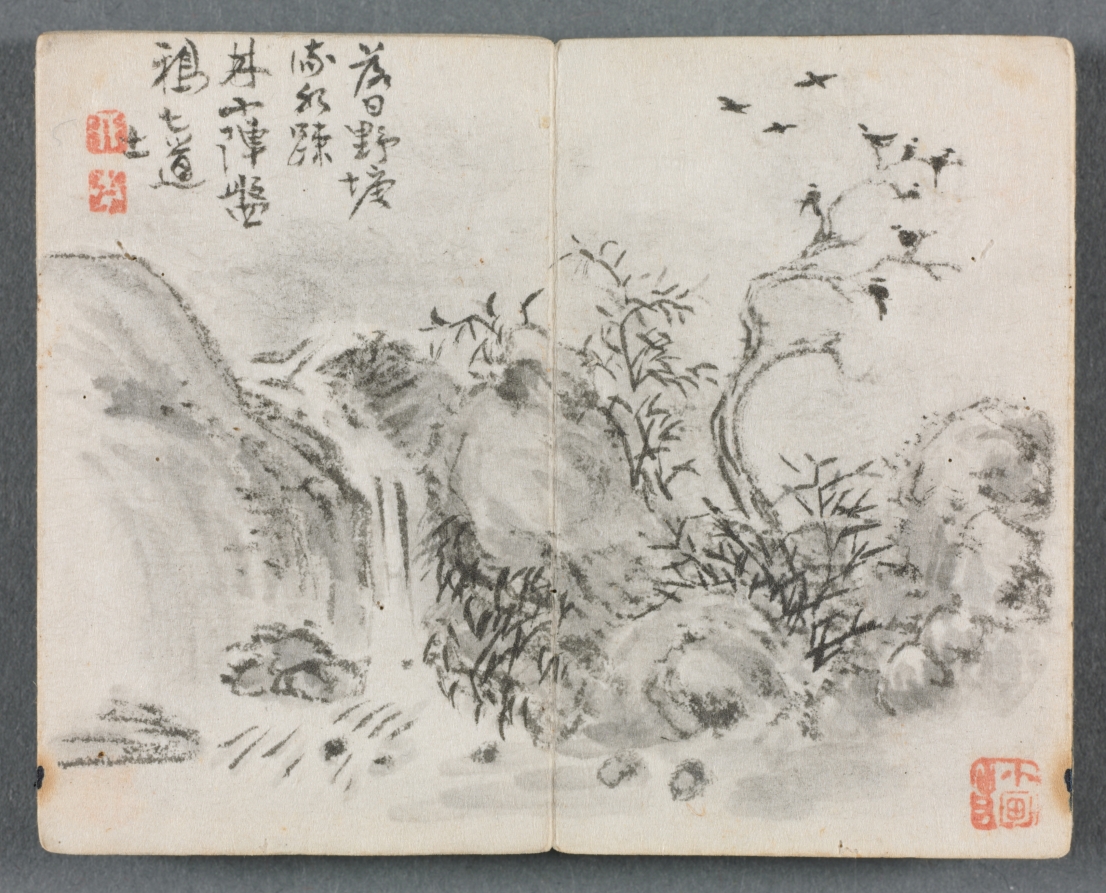 Miniature Album with Figures and Landscape (Waterfall Landscape) by Zeng Yandong (Chinese, c. 1751–1827) — VisualArtsDB