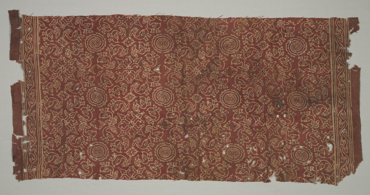 plain weave: cotton, stamped mordant resist and dyed