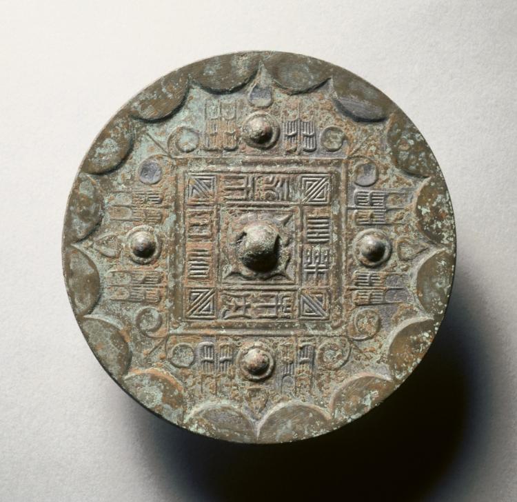 Mirror with a Square Band, Four Nipples, and Grass Leaf Motifs