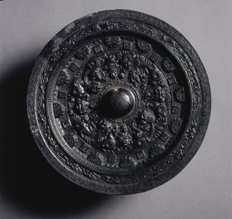 Inscription: I made this bright mirror by refining the three metals. Then I sculpted infinite forms.