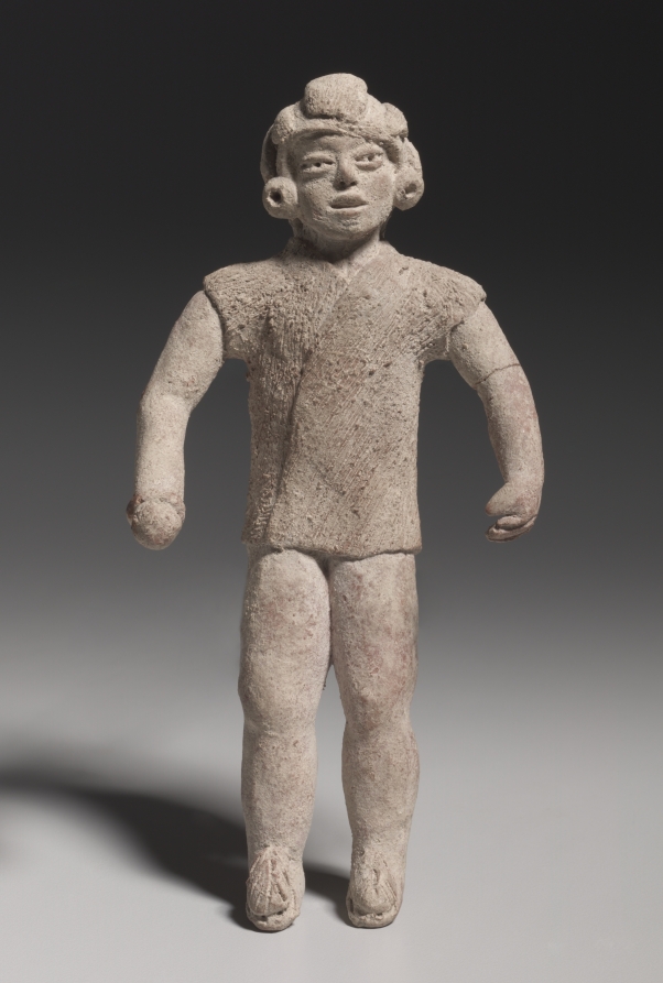 Ballgame ceremonialism and art peaked between AD 600 and 1100 in Veracruz and elsewhere, but forms of a ballgame were played at most times and places in Mesoamerica. This charming figurine, which seems to hold a ball, illustrates that the game developed much earlier, although we know little about its meaning during this period.