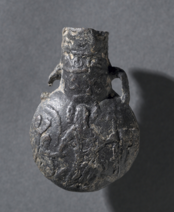 After the Crusader conquest of the Holy Land in 1099, Jerusalem experienced a revival of Christian pilgrimage. During the 12th century, the Church of the Holy Sepulcher was rebuilt, redecorated, and reconsecrated. With the influx of new pilgrims, especially from Western Europe, lead ampullae (small flasks) such as this very rare example were briefly reintroduced. The flask was cast with images of the Church of the Holy Sepulcher and Christ’s Descent into Limbo (Anastasis), establishing a visual connection with the holy sites of Christ’s death and entombment.