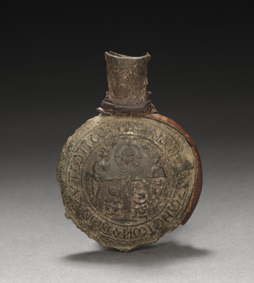The images found on the sides of surviving lead pilgrims' ampullae include scenes relating to the life of Christ, and by extension to the holy sites (loca sancta) where the events took place. Cast into the sides of this ampulla are scenes of Christ's Crucifixion on the front and the Ascension on the back. The use of such sacred images on these vessels illustrates the early Christian belief that images were carriers of divine power. This ampulla is known as a "Monza" or "Bobbio" type after caches of similar examples discovered in those two Italian towns.