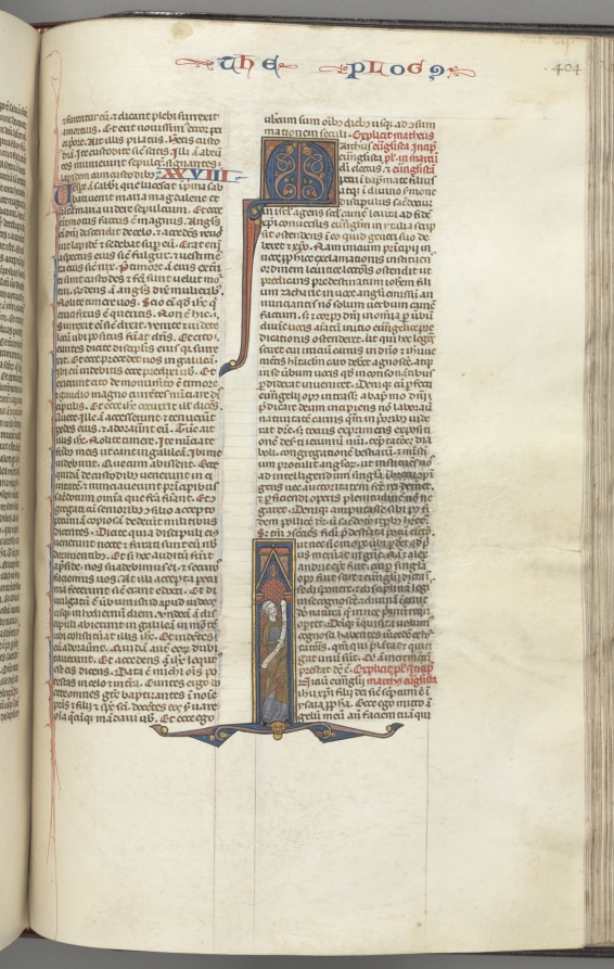 Fol. 404r, Mark, historiated initial I, Mark standing with a scroll by — VisualArtsDB